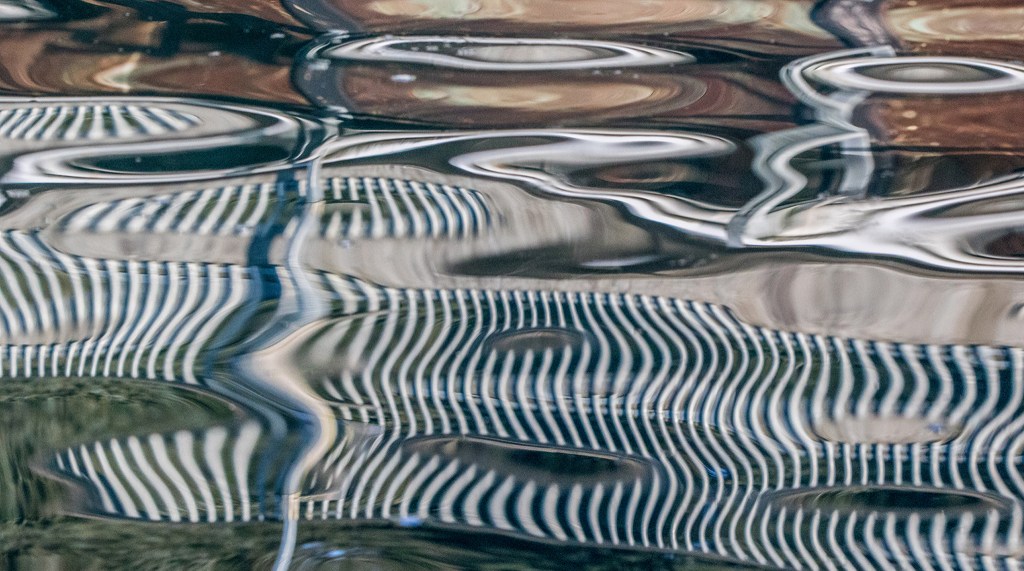 Reflection of pilings at the harbor. Photo by Ray Tsang.