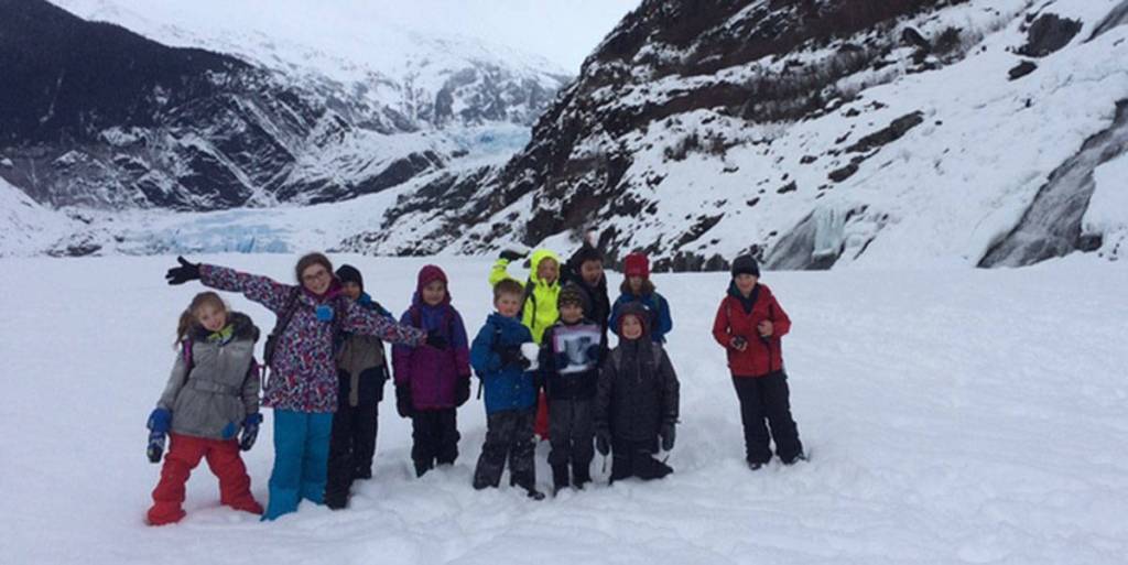 Kids attending Discovery Southeast spring break camp walk out on Mendenhall Lake. Submitted photo.
