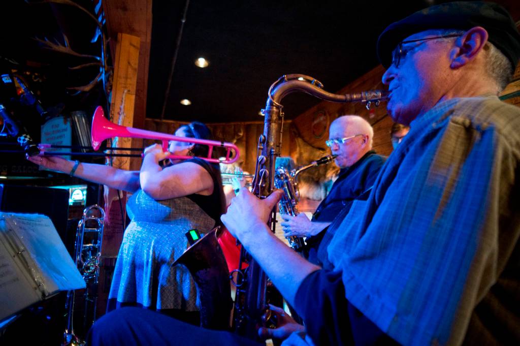 At 10:32, The Rendezvous is packed. Just 30 minutes earlier, it had been nearly empty. While Raisin Holy Hell cycles through upbeat folk songs that have people spinning and sweating on the dance floor, Marie Rose works the bar. Rose — a former Juneau bartender who prefers to go solely by that moniker instead of her first name — currently lives in Pelican but comes back to town to work at the Alaskan and Rendezvous for this one week every year.