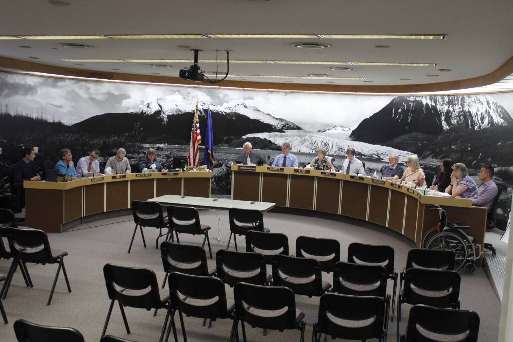 The City and Borough of Juneau Finance Committee debates the 2018 Fiscal Year budget late into the night Wednesday. The committee voted to appropriate $20,000 to a survey looking into the Juneau Access Road, among other additions to the budget. (Alex McCarthy | Juneau Empire)