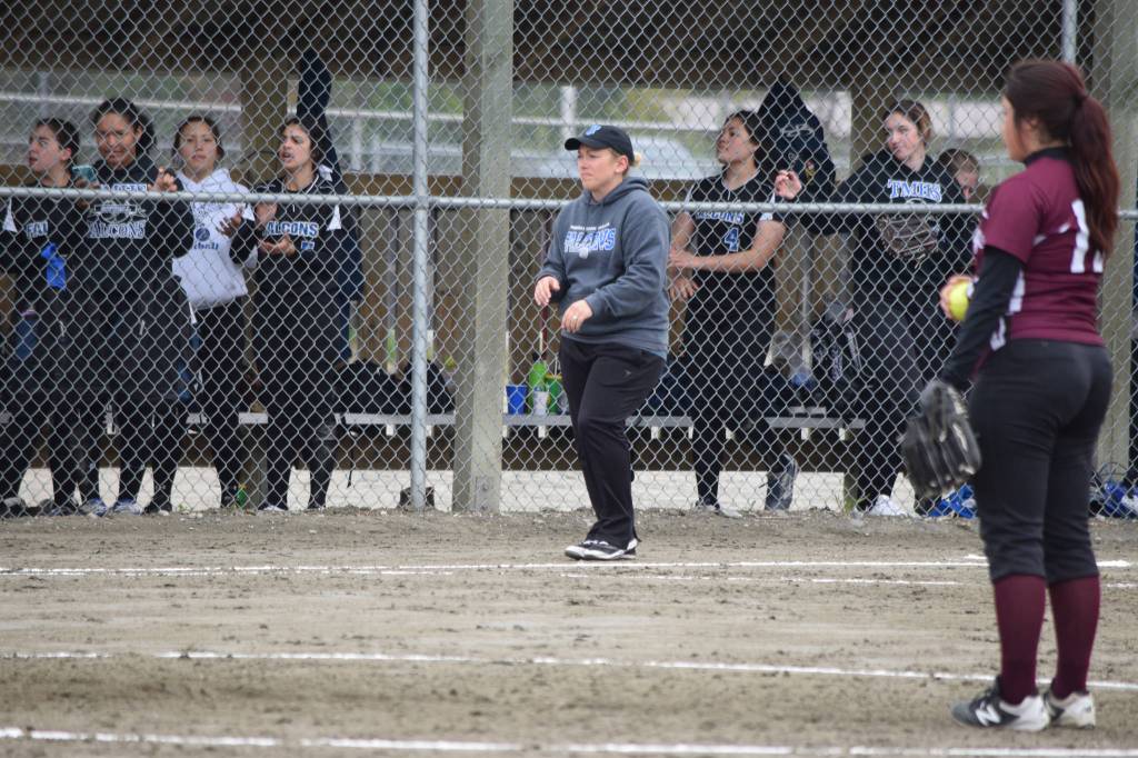 Thanks to some deep fly balls and fielding errors, the Falcons built a quick 6-1 lead after two innings. The game evened out in the third, fourth and fifth innings though, before TMHS gave a varsity welcome to Kayhi freshman pitcher Lianne Seludo.