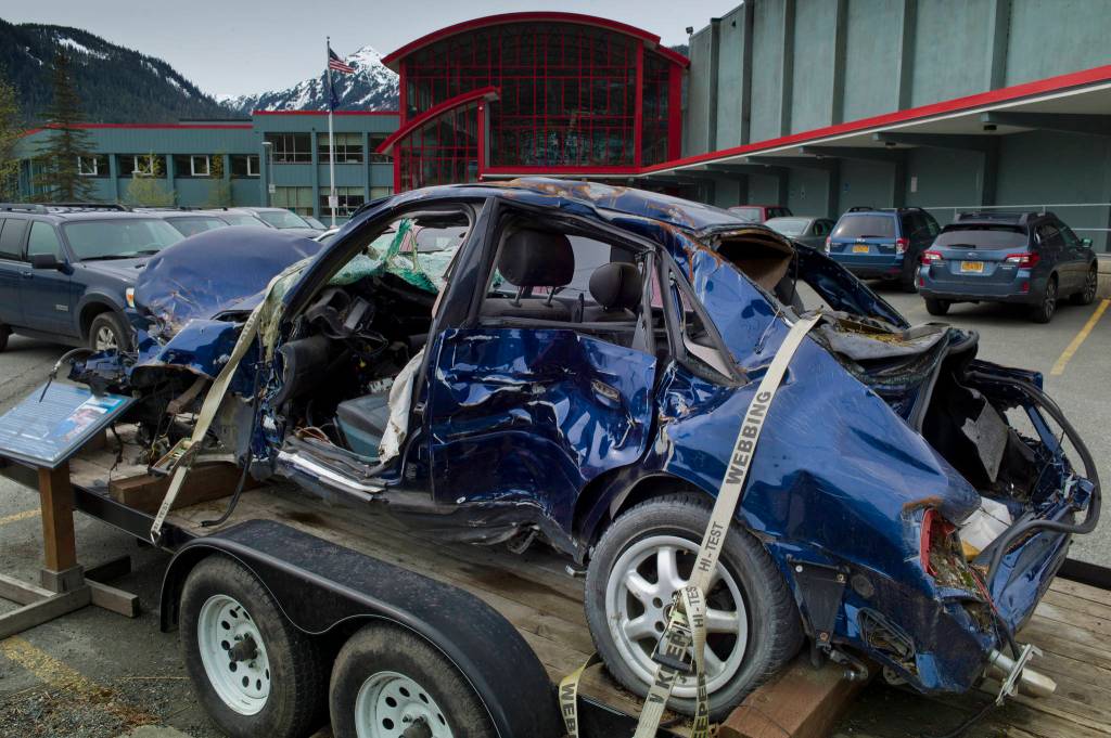It’s been eight years since the drunk-driving crash that claimed the life of Taylor White just days after his Juneau-Douglas High School graduation in 2009, but that memory is still fresh in the minds of many. White, who was a passenger in a car driven by a drunk driver, serves as an example of the dangers of drinking and driving. A sculpture modeled after the car in the crash has stood in front of the local high schools in the past month, a physical reminder of the dangers of drinking and driving.