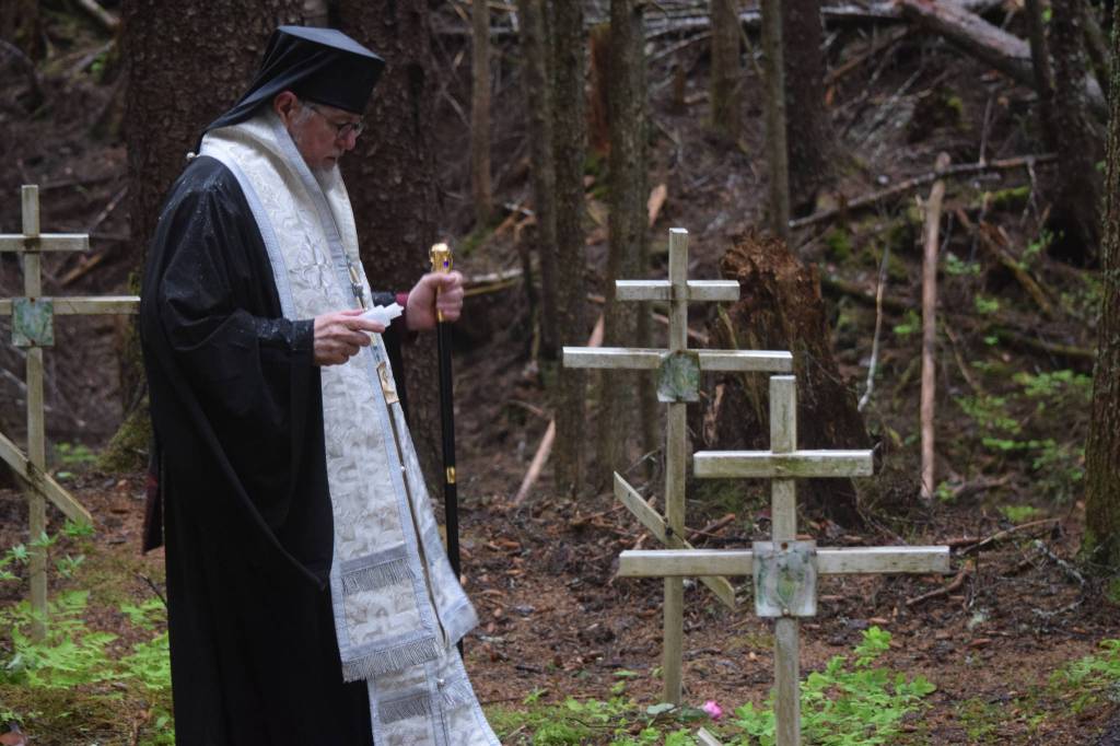 Once carried into the woods by a group of volunteers, the Right Reverend David, Bishop of Sitka and Alaska for the Orthodox Church, blessed the cross and the gravesites. (The Bishop’s last name is Mahaffey, but bishops are monastic, and as such, he’s given up his last name.)
