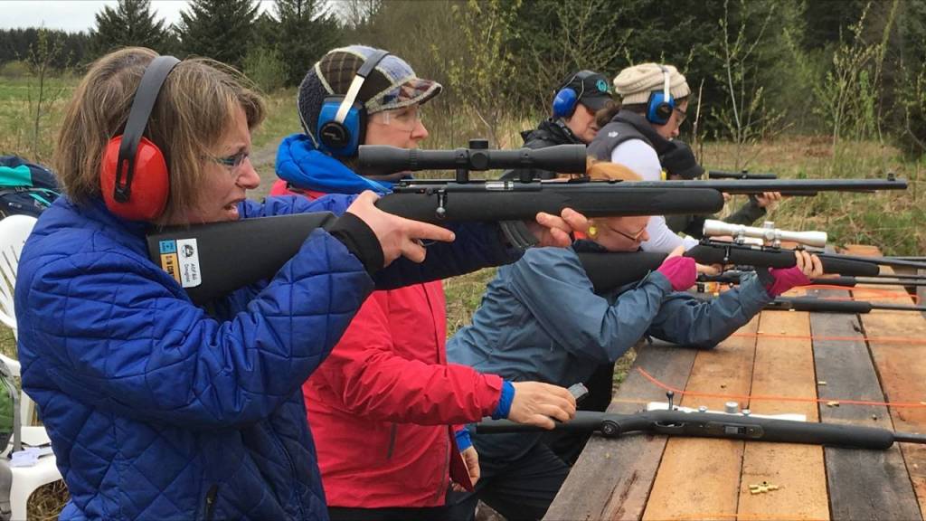 Shari Paul and others at the shooting range. Photo by Linda Newman