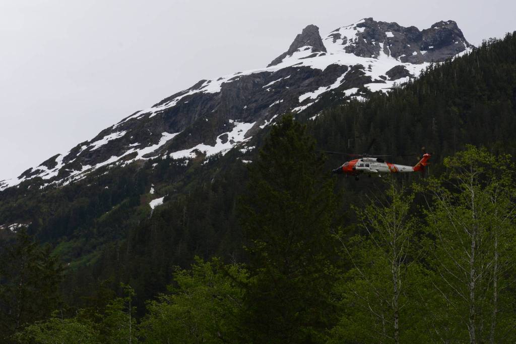 An MH-60 Jayhawk helicopter from the Coast Guard Air Station Sitka searches for missing Hydaburg man Frances Charles on June 23. The search was suspended the next day after no trace of Charles was found. (Photo courtesy of the United States Coast Guard)