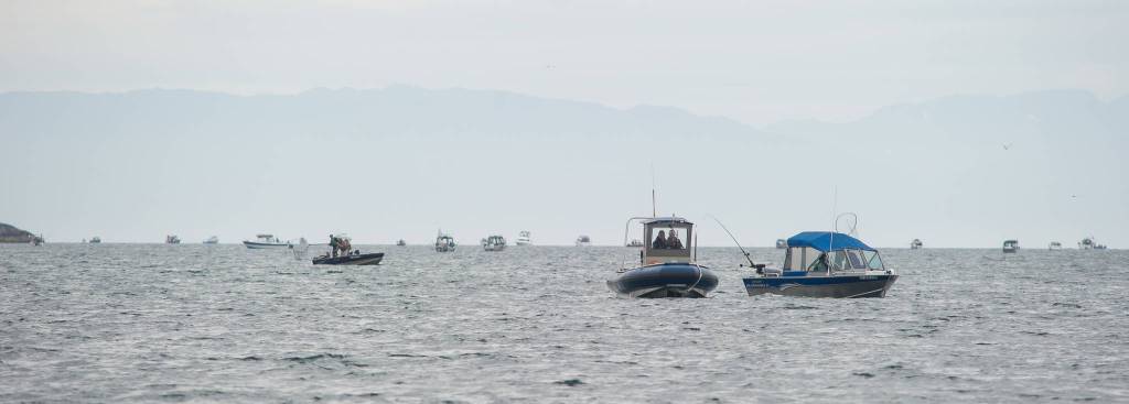 Drifting in front of Douglas Harbor at 7 a.m., there weren’t many boats pouring out for the Golden North Salmon Derby. Unlike year’s past, boat traffic only trickled: A Lund skiff here, a Nordic Tug there.