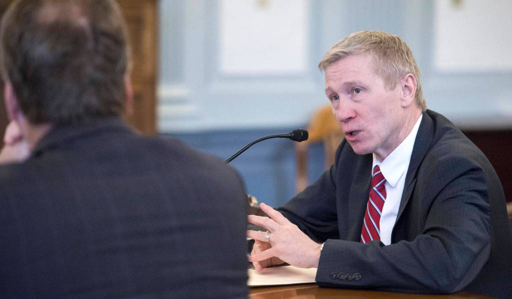 Commissioner of the Department of Corrections Dean Williams, right, answers questions in Senate Finance Committee at the Capitol on Tuesday, Oct. 24, 2017. (Michael Penn | Juneau Empire)