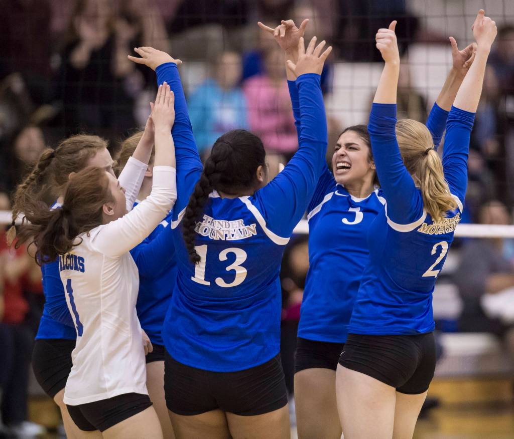 Thunder Mountain defeated Juneau-Douglas, 21-25, 21-25, 25-18, 25-21, 16-14, on a wet Friday night.
