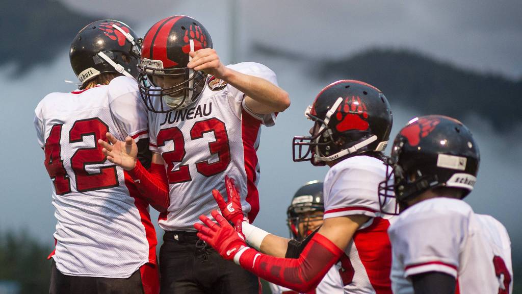 Juneau-Douglas’ Koen Schultz shown this season. The Crimson Bears will be the only high school football team in Juneau next season. The Alaska School Activities Association approved the Juneau School District’s request to consolidate their two football programs under JDHS. (Michael Penn | Juneau Empire File)