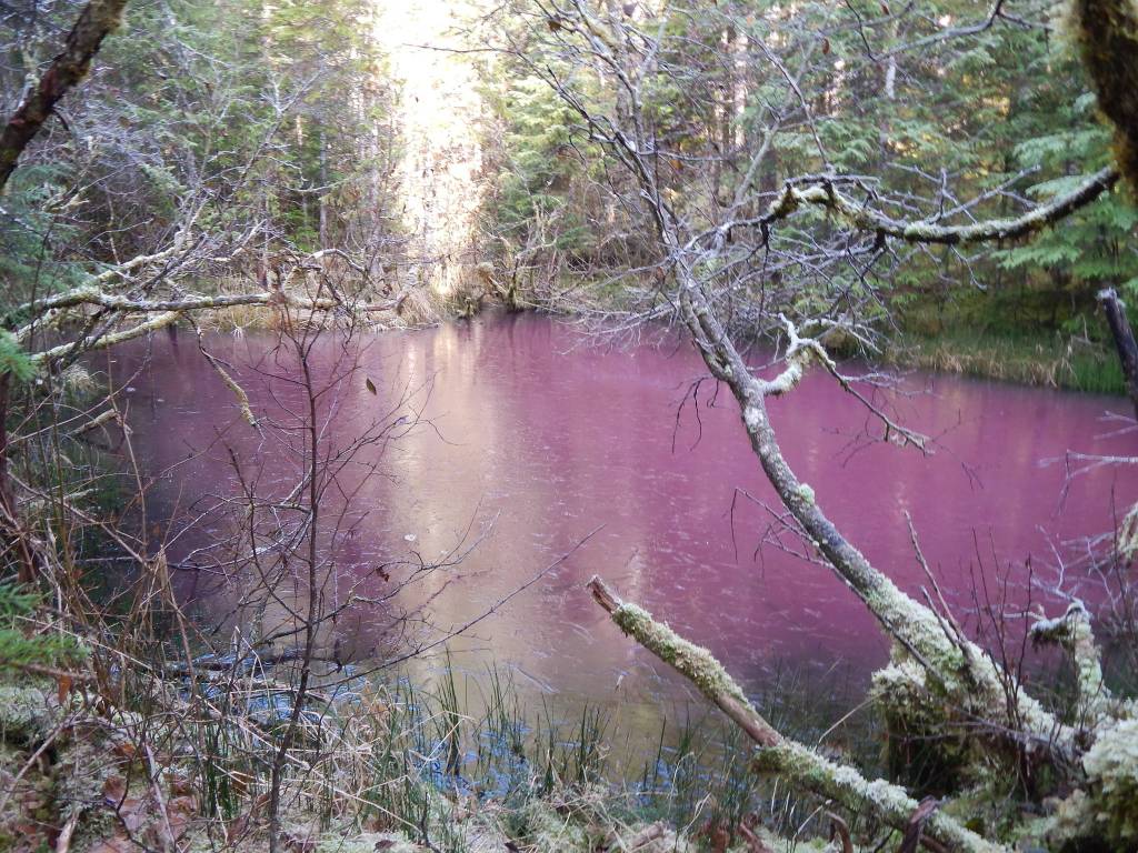 University of Alaska Southeast student Jenae Kesey was on a bike ride with her mom and dad last Saturday on Herbert Glacier Trail when she stumbled upon something she’s never seen before: A pond glowing bubblegum pink.
