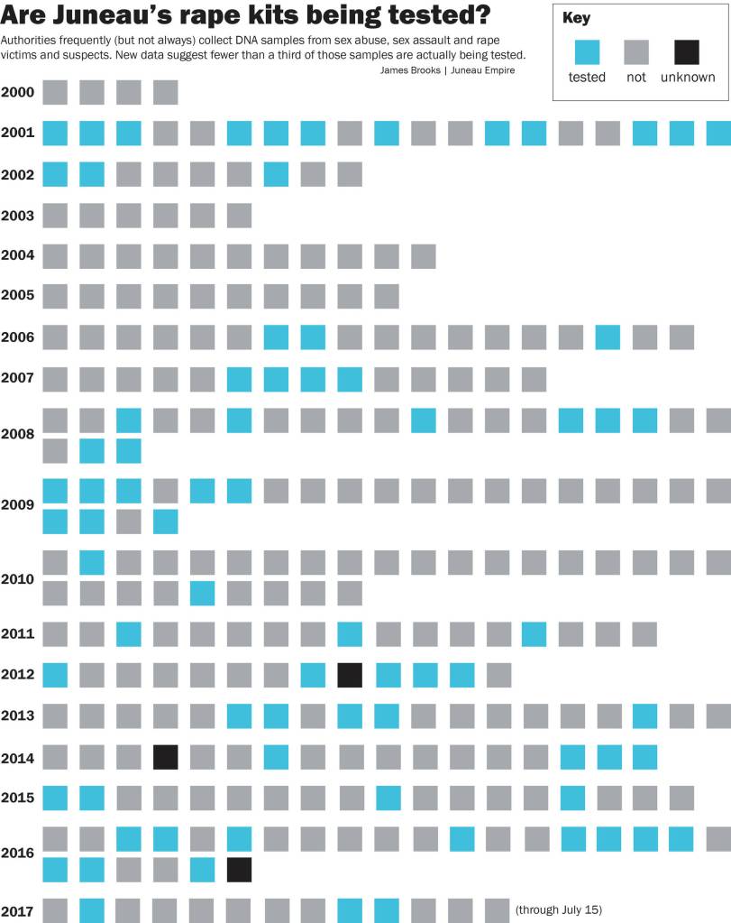 “From the data we’ve seen so far, Juneau is probably the worst city when it comes to testing rape kits,” she said. “Nationwide, it’s one of the worst we’ve seen.”