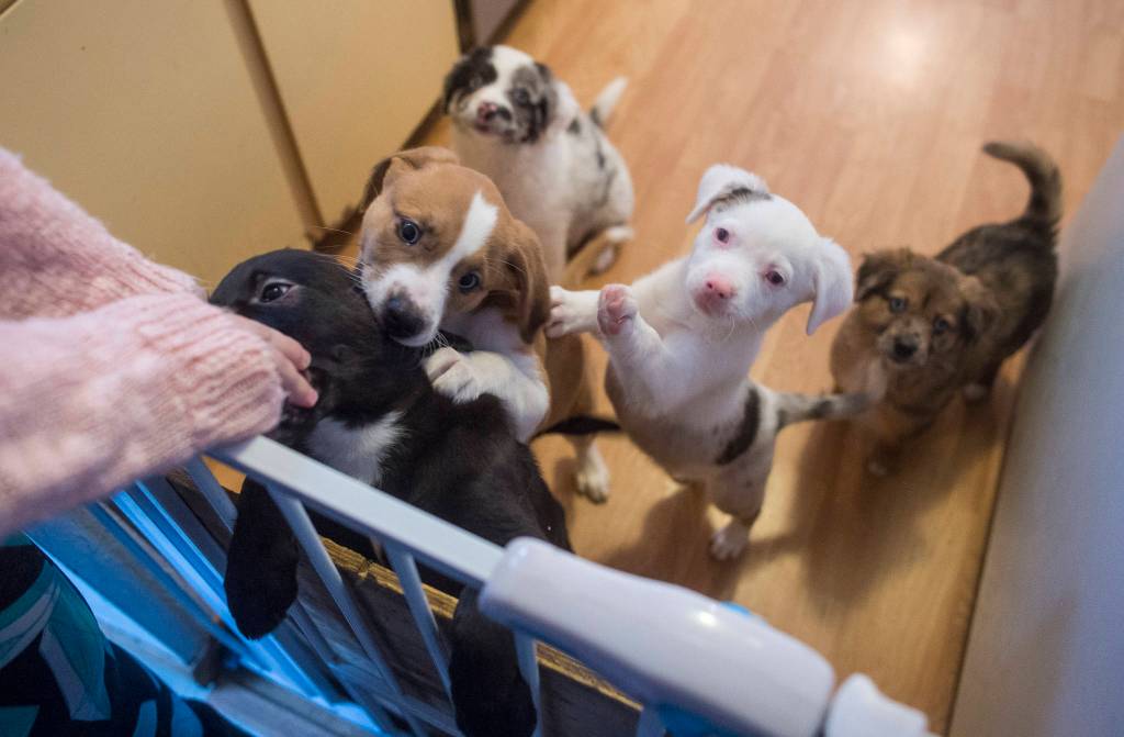 This week, she has some special guests: A litter of 6-week-old puppies from Prince of Wales Island. Most of them are blind. One is both blind and deaf.
