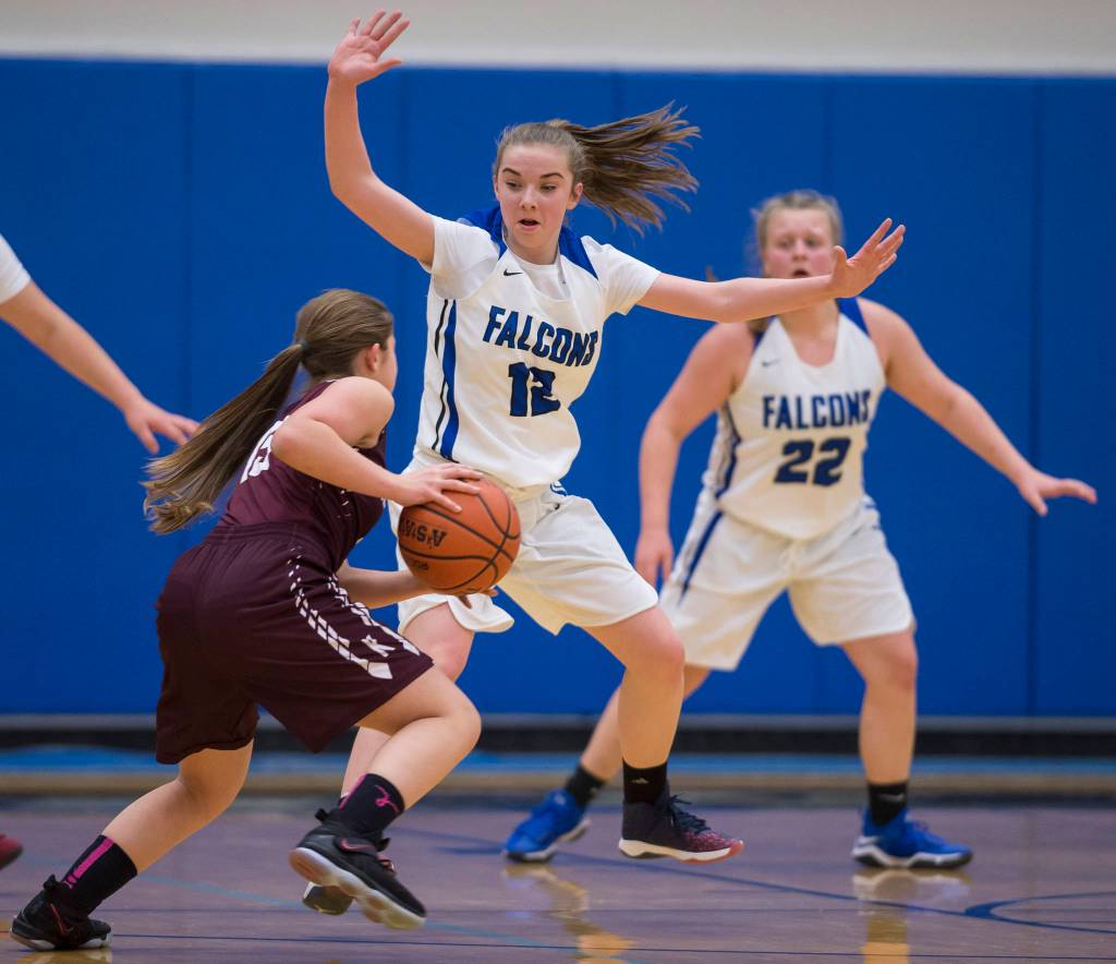 TMHS senior Andee Johnson scored six quick points near the paint and Taz Hauck nailed a 15-foot jumper to bring the Falcons within one point of Ketchikan late in the third quarter.