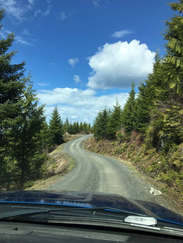 The pavement ends at the Tongass National Forest sign, after that there’s a hundred miles of old logging roads. My dad’s familiar with these dirt roads as he’s a retired field supervisor with the U.S. Forest Service. He’s in his late 70s and lives with me and my husband at our fishcamp. We often plan excursions to learn, photograph, and harvest from nature.
