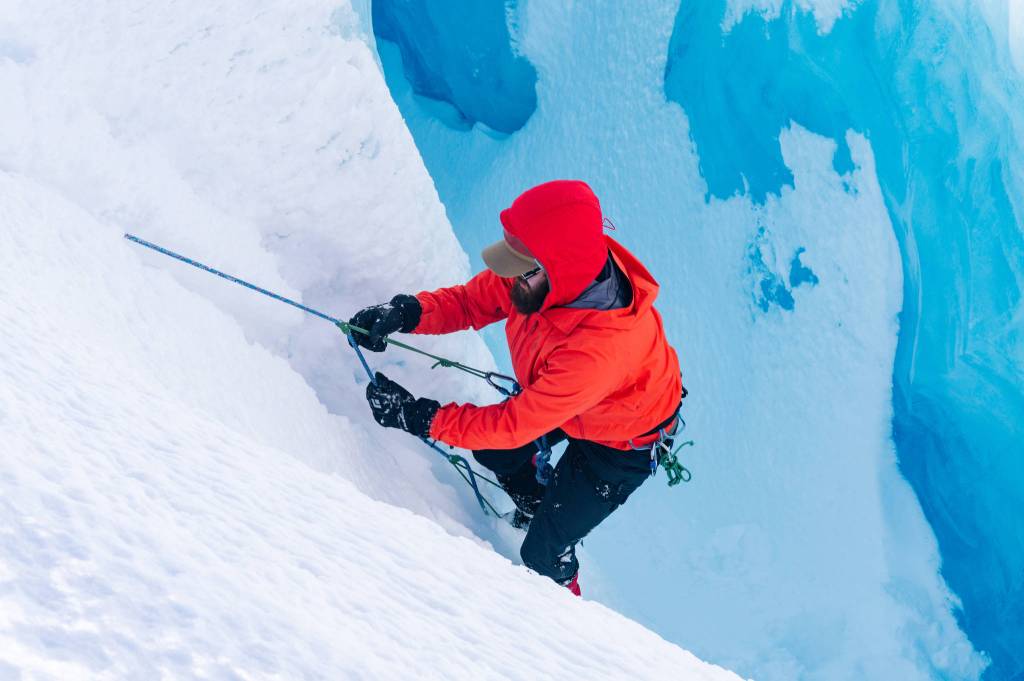The group learned how to properly travel while roped together on the surface of a snow-covered glacier, and how to rescue someone from a crevasse. If you are the fallen climber and remain conscious you need to self-ascend once your partners have fixed the rope. To rescue a fallen teammate who’s injured, the remaining rope team builds a snow anchor and mechanical advantage system. We stay roped up together so that if one person falls in, the rest of the people on the rope team can self-arrest their fall.