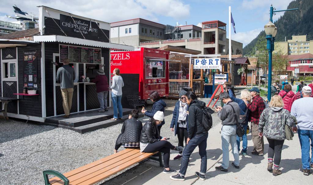 Ten thousand cruise passengers poured into Juneau on Tuesday, with many of them making their way past food carts on South Franklin Street.