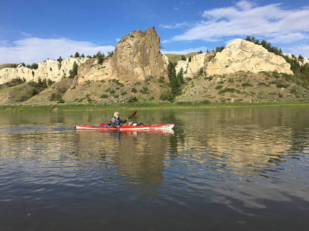 Buck Nelson paddling up the Missouri River while retracing the Lewis and Clark Trail in 2016.