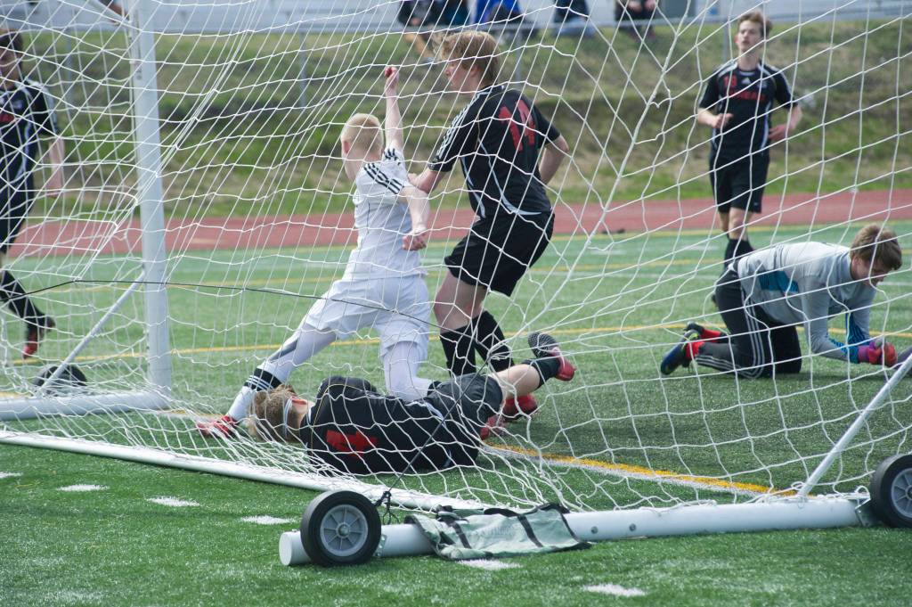With the clock winding down on the ASAA Division II boys soccer state championship, Tuttle simultaneously boxed out a defender and chested the ball to himself. With Juneau-Douglas High School goalkeeper Tad Watson tangled up with Ronan Davies behind him, Tuttle tapped the ball into an empty net.