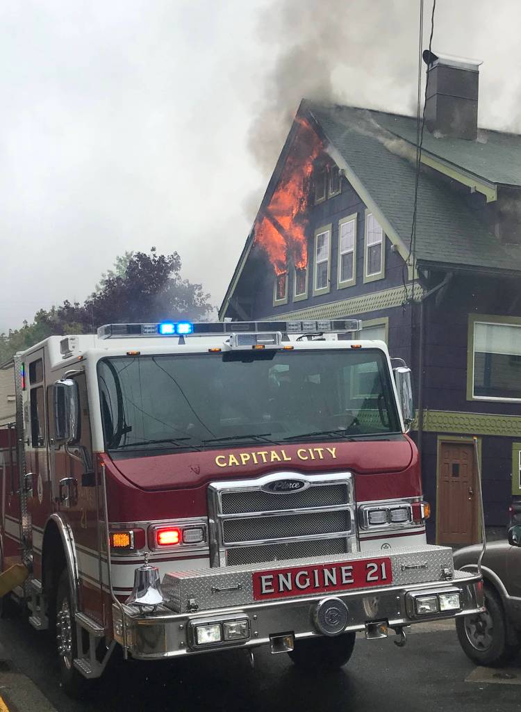 On the scene, Capital City Fire/Rescue Fire Marshal Dan Jager said it was unclear what the cause of the fire was, but it doesn’t appear to be suspicious. It appeared to start on the third floor, Jager said, and Stephenson said the fire was in the master bedroom on the third level. Stephenson said he believes the house is insured.