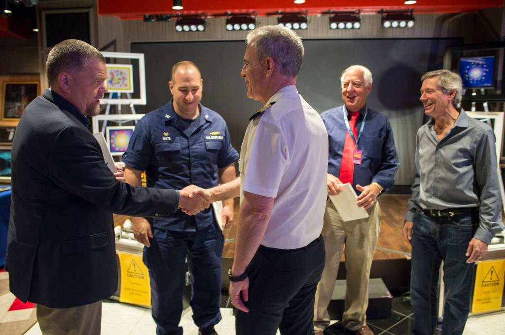Standing on the dock before boarding the ship, newly-appointed Capt. Stephen White, U.S. Coast Guard Sector Juneau commander, said he “can’t imagine” being at the helm of such a big boat. At 1,092 feet, the Bliss is what’s called a “new panamax” or “neopanamax,” ship, Capt. Steven Bengtsson later explained.