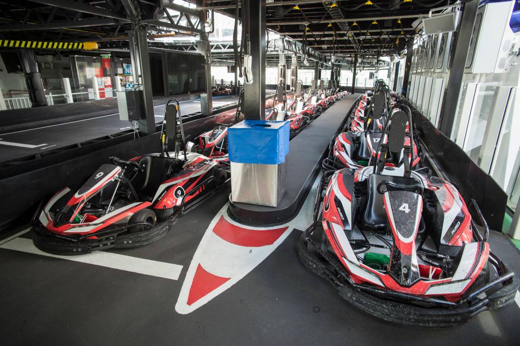 A go-kart track stands outside at the stern of the vessel. Passengers pay $10 a pop back here for 10 laps around the winding, two-story track, Opon said. Sometimes they don’t want to slow down at the end of their rides, so ship employees take over the go-karts remotely and do it for them.