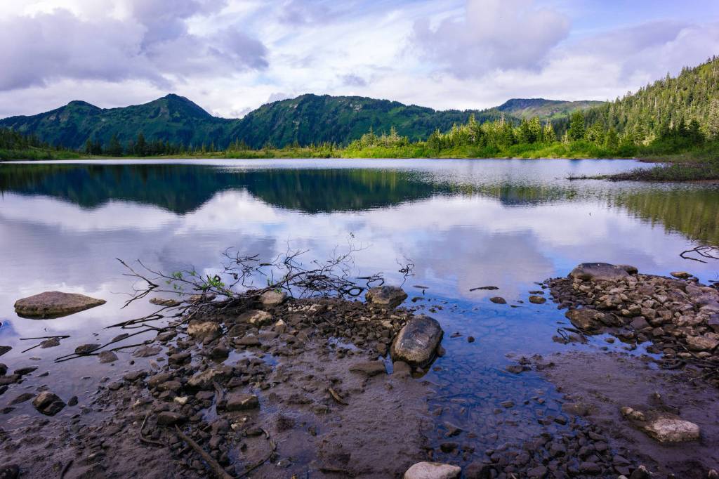Cropley Lake is a super quick hike up the Logjam slope from the Eaglecrest Ski Area parking lot. There’s probably a trail but we couldn’t find it. It’s a semisteep walk through wet marsh and some mud. Just follow your magic Jack Sparrow compass and you’ll get there in no time.