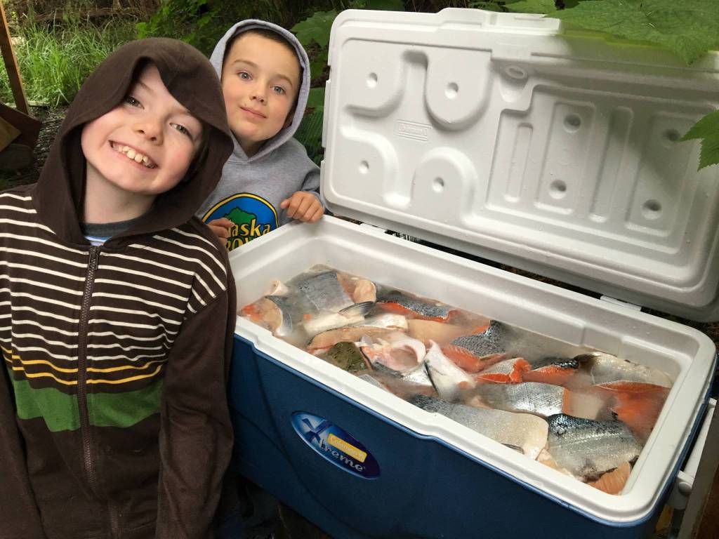 My grandsons Timothy and Jackson are visiting the fishcamp for 10 days. Today, my dad — their great-grandfather — and I are teaching them to smoke king salmon in the way he learned to smoke salmon from his dad. My grandsons sit at a small table transcribing their great-great grandfather’s smoked salmon recipe. As a way to help them remember, I have each grandchild write the steps for brining and smoking fish.
