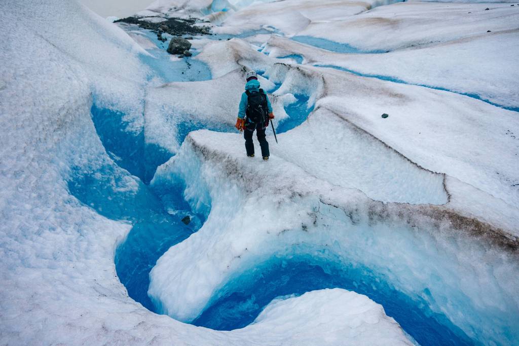 Most people (like me in particular) hike out to the glacier wearing just tennis shoes. But you need spikes on your feet in order to actually see anything cool. Most of the glacier tour companies give their clients these rubber slip ons with metal chains called Microspikes but those only get you so far. You need crampons to actually see the good stuff.
