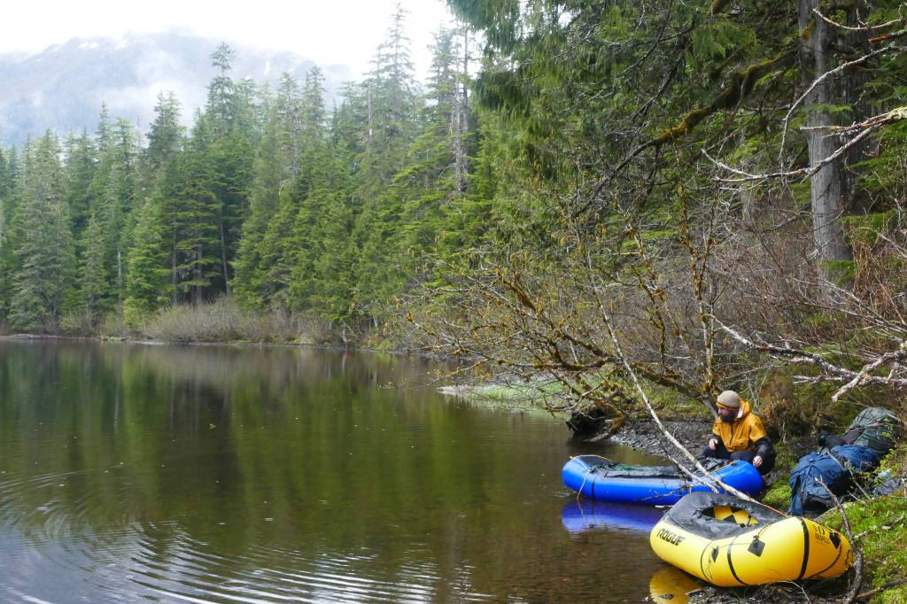 The longing to go deeper won out. On a bluebird day Mike and I beached pack-rafts on a gravelly beach covered with clumps of goose tongue and browsed sedges. A bear and a small herd of deer grazed the edge of the forest. One deer came within 20 yards of the bear, but it was intent on greens — so intent that it didn’t spook while we shoved rafts into our backpacks and hiked past it into the woods.