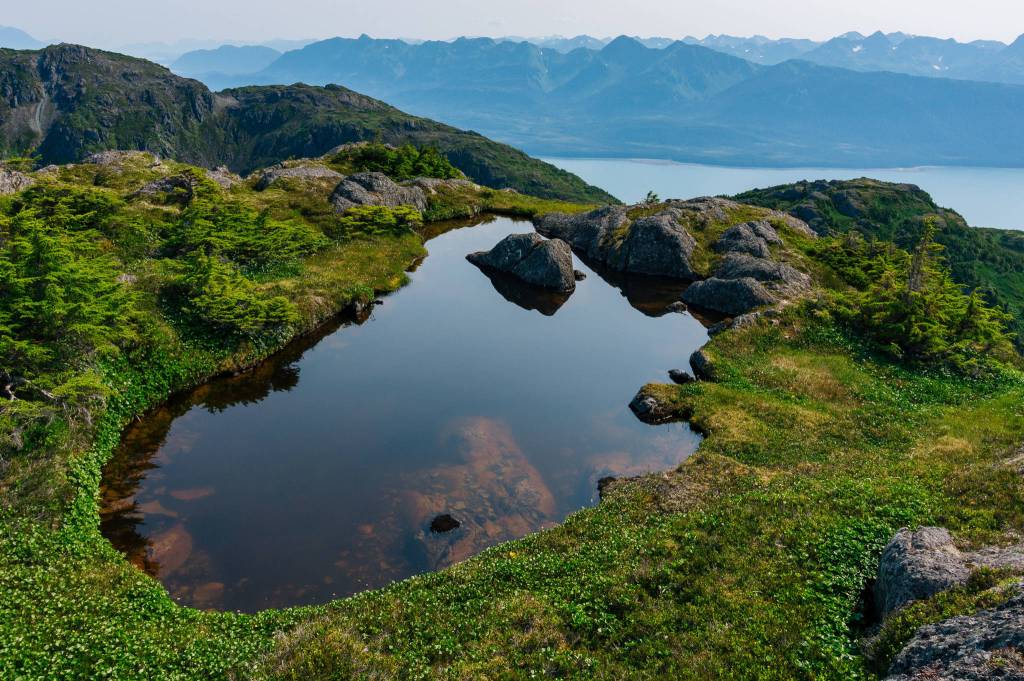 I hiked Mount Bradley (Jumbo) Sunday, July 22. By myself but not alone. There were many groups on the trail. It almost seemed like a community event. The trailhead is in the middle of a residential area on Fifth Street on Douglas Island. The trail was beautiful, it had a little bit of everything; forest, waterfall, muskeg, bridges and magical alpine lakes.