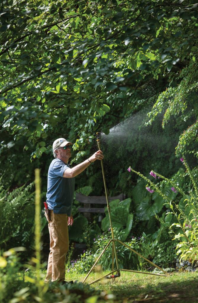 Every evening, he sets down a sprinkler, goes to bed, then wakes up at 11 p.m. and moves it again. He goes back to sleep and wakes up at 2 a.m. to do the same. Then comes 4 a.m. Then 6 a.m. After one final doze, it’s back to the normal day.