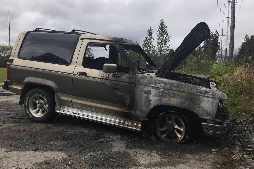 The caliper — the part that squeezes the brake pad against the rotor to stop a vehicle — on that brake was stuck, Quinto said, and the men were hoping the brake would cool down. Unfortunately for them, the heat started a fire and the car went up in flames. Quinto said the car is a total loss.