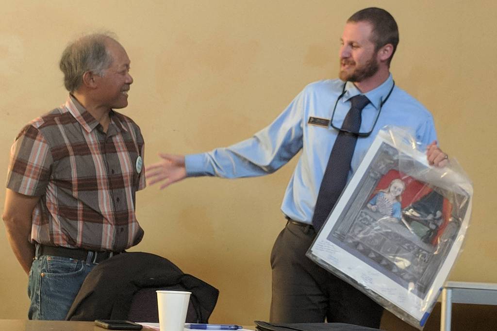 Board Vice President Bing Carrillo presented Scott with a piece of art and thanked him for his service.
