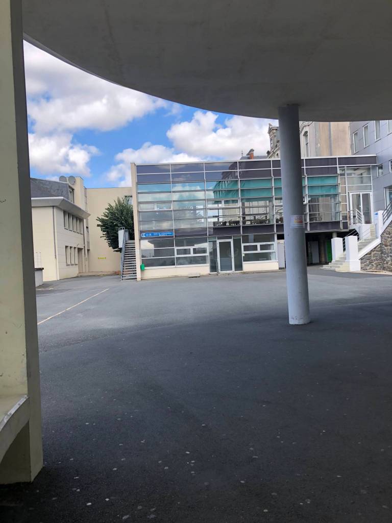 In France, school lunch is not just a meal, it’s an event. Every day, we are served an appetizer, bread, the main meal, more bread and dessert. Yesterday, for instance, my lunch was chicken, ratatouille, couscous and yogurt. The most interesting thing I’ve eaten was pâté and “concombre a la creme,” (a little like pudding made with cucumbers). We do not go through a cafeteria line, but kitchen staff serves lunch at our tables on china plates with stainless steel platters and forks, knives and spoons. In the cafeteria, there are long tables with chairs and benches. Water pitchers and glasses are at each place. There are so many students that every table fills up, so we have to reserve a place with friends each day before school. This took a while to get used to.