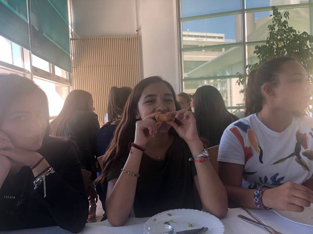 My classes are all really interesting, even if I don’t understand them completely. A few times a week, I have English class — my favorite! I am the star student, and can help the teacher with certain pronunciations, or explain things like a “GPA.” In History/Geography, the professor asked me to use Google Maps to show the class where I live. They were curious to see that Juneau is surrounded by water, mountains and glaciers. My classmates want to visit me in Alaska some day, but think it will be too cold. They don’t believe me when I say it’s not cold all year. I showed them a picture of JDHS, and they said it’s a beautiful, modern school, and were fascinated by the bear in the glass case.