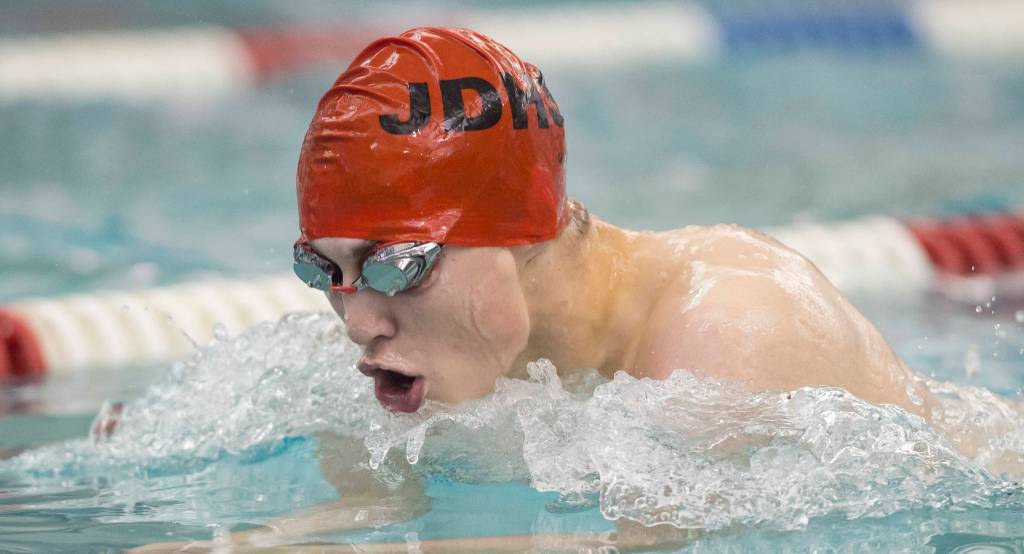 Boys 50 Yard Freestyle — 1, Tyler Weldon, JDHS, 22.78. 2, Erik Jim, JDHS, 25.32. 3, Reed Gardinier, JDHS, 25.34. 4, August Kiessling, TMHS, 25.36. 5, Wade Jack, Wrangell, 25.45. 6, Noah Loseby, TMHS, 25.90. 7, Sean Spigelmyre, PHS, 25.94. 8, Jimmy Baggen, Wrangell, 26.36. 9, Gabe Loseby, JDHS, 27.61. 10, Chase Lockhart, PHS, 27.94.