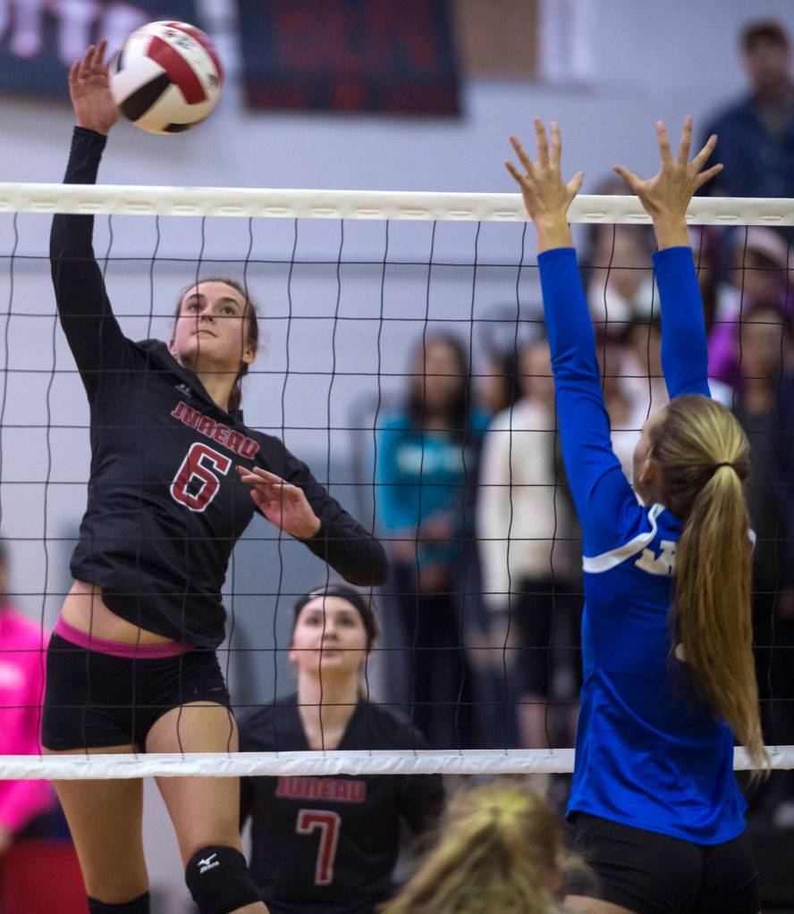 The Region V volleyball front runners met Friday night before several hundred fans at Juneau-Douglas High School.