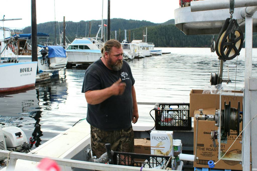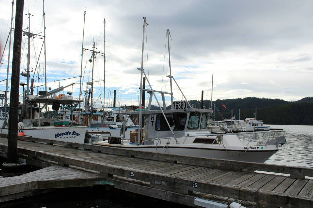 We made it across, but were uneasy with the way it got rough at the approach to Thorne Bay. We topped off our jerry jugs at the fuel station and then headed for the store without waste of time. The tide was high enough that we could drive up the small creek that curves around the store. We beached the skiff below the parking lot and I climbed up to discover that the lot was much fuller than usual.