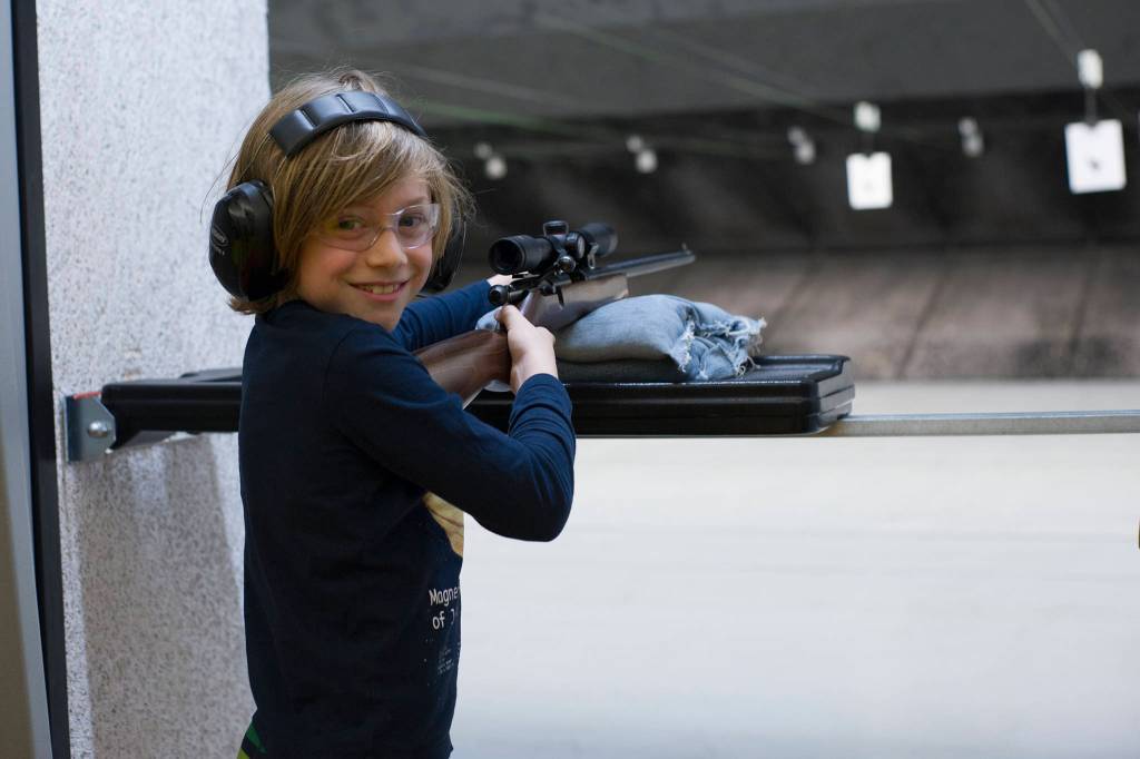 Angus Andrews, 9, shoots a rifle the Thanksgiving Turkey Shoot at the Alaska Department of Fish and Game Hunter Education Facility rifle range on Saturday. The event was put on by the Juneau Gun Club, Juneau Shooting Sports Foundation, Juneau Archery Club and ADFG and awarded approximately 90 turkeys. (Nolin Ainsworth | Juneau Empire)