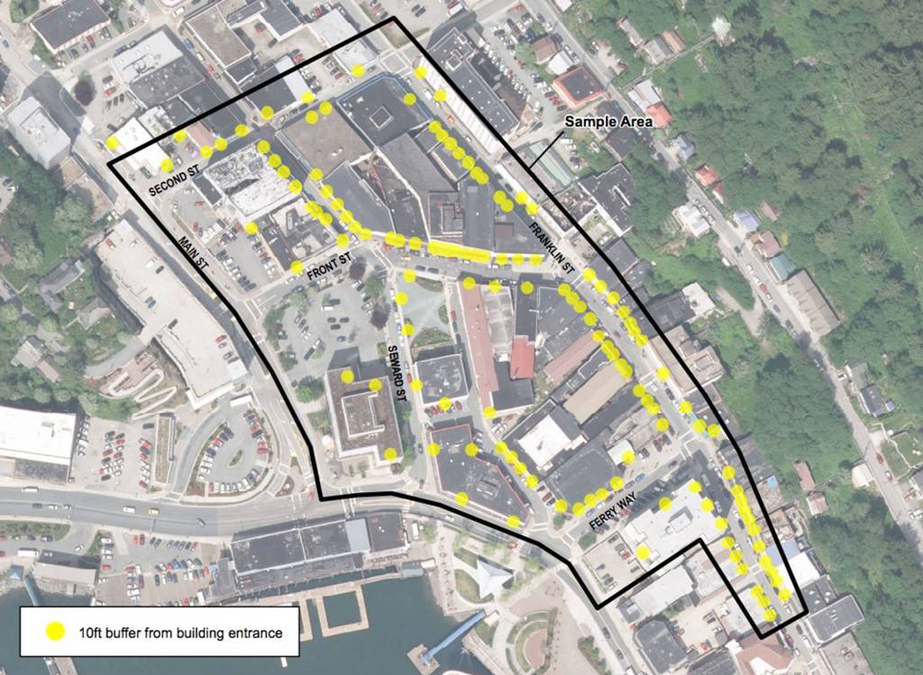 The main change is that people will have to be 20 feet away from a restaurant if they want to smoke, which is twice the buffer required by CBJ statute (36.30.025). Downtown Juneau, which has a heavy concentration of bars and restaurants, will now be a challenging place to smoke, according to a diagram provided to the CBJ Committee of the Whole.