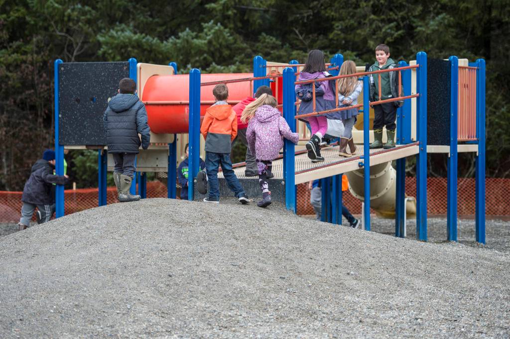 Petersen, who has been teaching in a DEC classroom for eight years in Juneau (and four at the elementary level), said there are a couple main challenges for disabled students on the playground. The rocks make it difficult for wheelchairs to go through, and a slope in the middle of the playground that ices up in the winter also gives students of all abilities trouble. PTO representatives at last Tuesday’s meeting pointed out that the piece of equipment that’s being replaced is often closed in the winter due to ice.