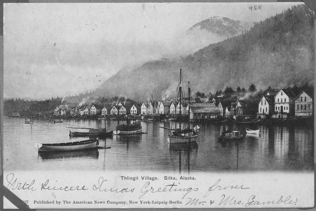 He includes in his letters some local news, describing a “pow-wow going on at the Indian village between these Indians and a neighboring tribe” to settle a difference. He says that the Sitka Tlingits, while out hunting recently, shot and killed a woman of a neighboring tribe, mistaking her for a seal as she was swimming. “Her friends have now come down in force to demand satisfaction which they are to have either in ‘blankets or blood.’” War, he reports, could well be the result.