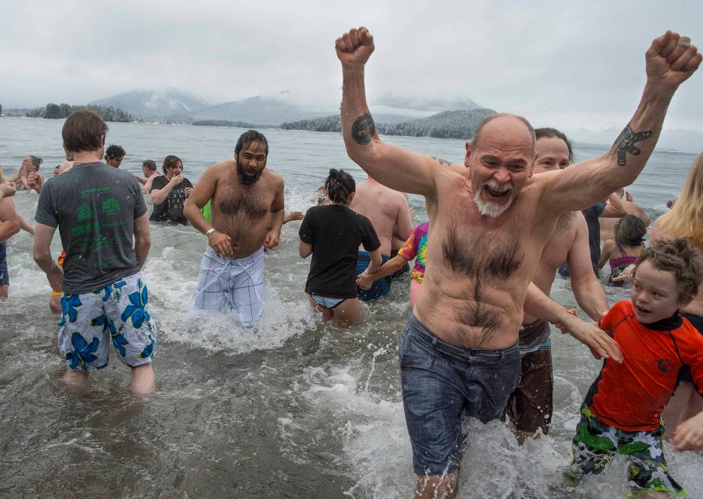 The annual Polar Bear Dip at Auke Recreation beach on Monday, Jan. 1, 2018.
