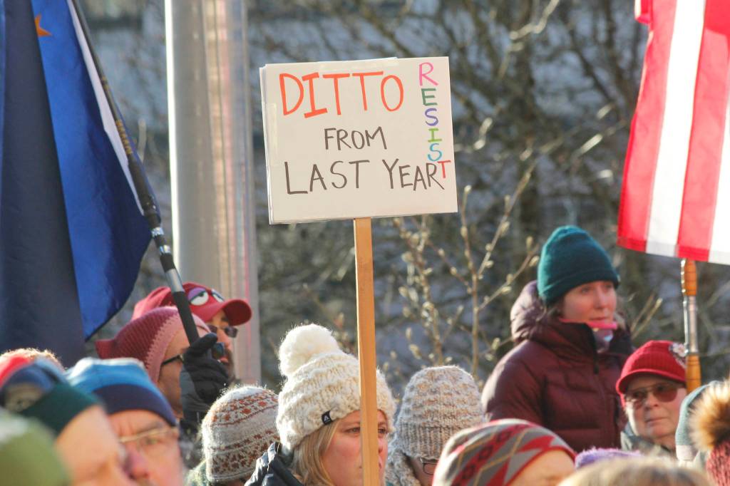 Hundreds of people came to Saturday’s Women’s March on the steps of the Alaska State Capitol. Many of them brought signs, showing messages ranging from pop culture references to political slogans.