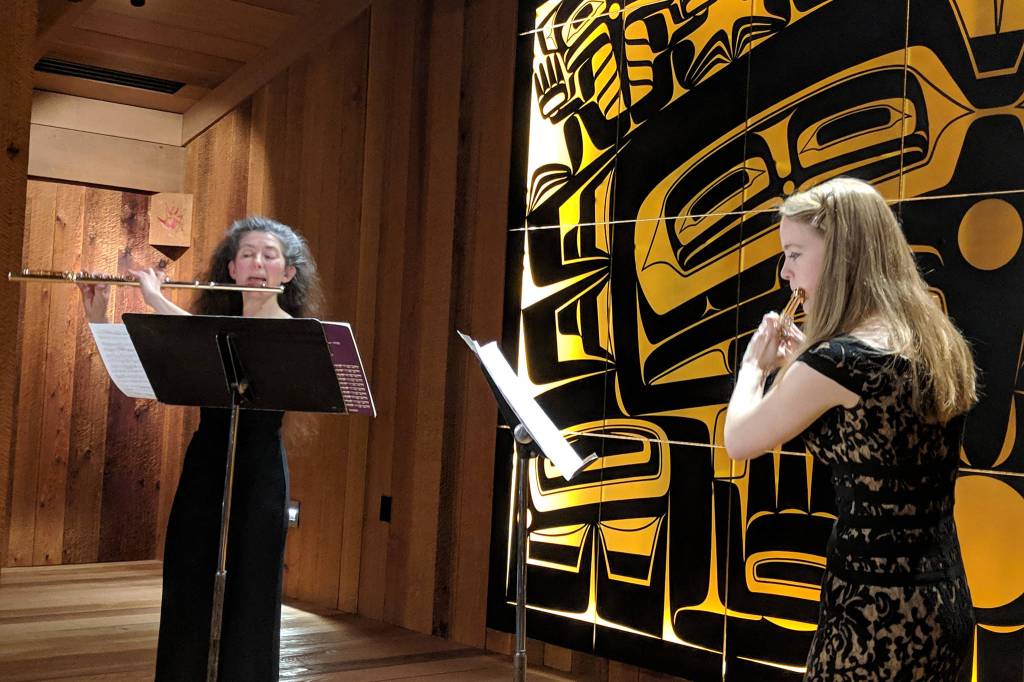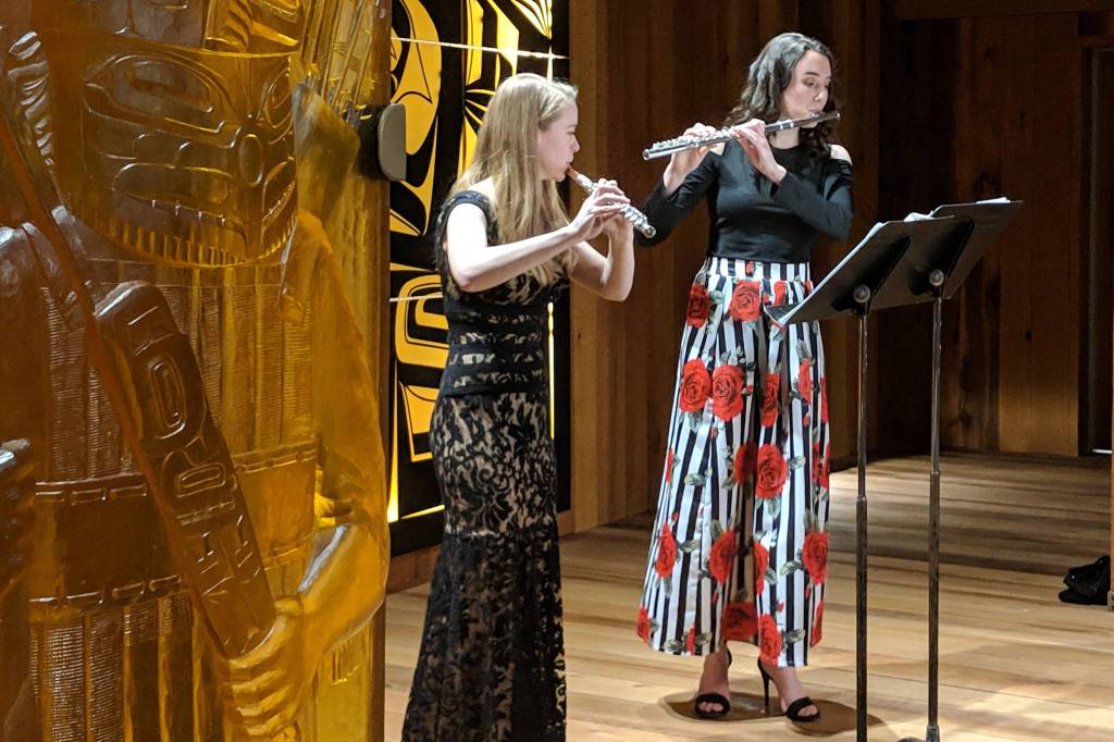The event, which was a joint fundraiser for the Juneau Symphony and SHI, featured Tlingit flautist George Montero, Armenian flautist Tigran Arakelyan and Juneau flautists Reece Bleakley, Kathryn Kurtz and Ingrid White.