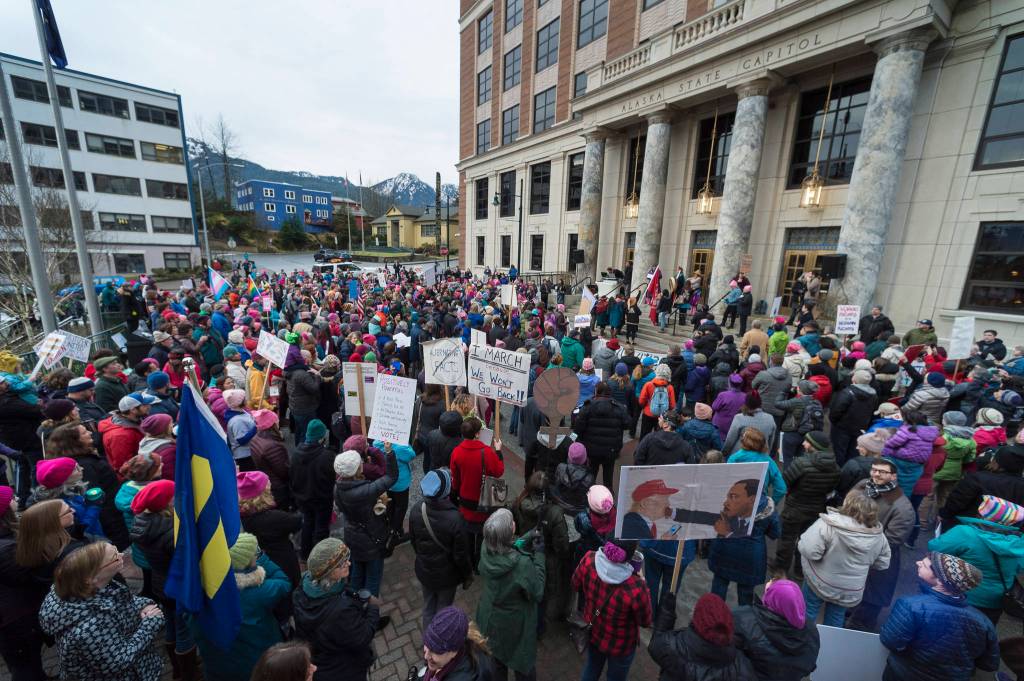 Michael Penn | Juneau Empire File                                Juneau residents turn out for the Women’s March starting with speeches at the Capitol before a walk to Marine Park on Jan. 20, 2018. This year’s march will be Saturday.