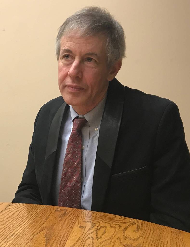 Sen. John Coghill, R-Fairbanks, listens to a question during a press conference Wednesday about Gov. Mike Dunleavy’s constitutional amendments. (Alex McCarthy | Juneau Empire)