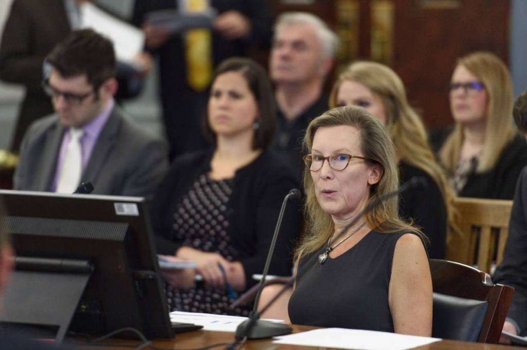 Gov. Mike Dunleavy’s Office of Management and Budget Director Donna Arduin presents the governor’s supplemental budget to the Senate Finance Committee at the Capitol on Tuesday, Jan. 29, 2019. (Michael Penn | Juneau Empire)
