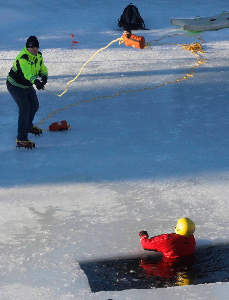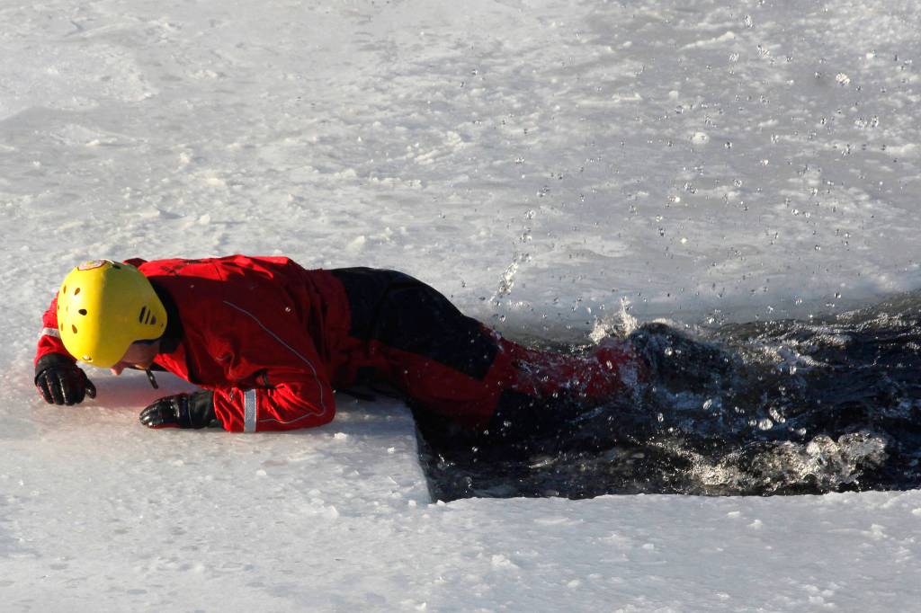 Capital City Fire/Rescue Capt. Travis Mead narrates a short video demonstrating how to get out of the water if someone falls into the ice. Pete Boyd, a member of CCFR’s Special Teams, is pictured getting himself out of the water. The first demonstration shows Boyd getting out of the water on his own. The second shows Boyd using ice awls to dig himself out of the ice. CCFR says these small picks can be bought for around $15 at stores around town.