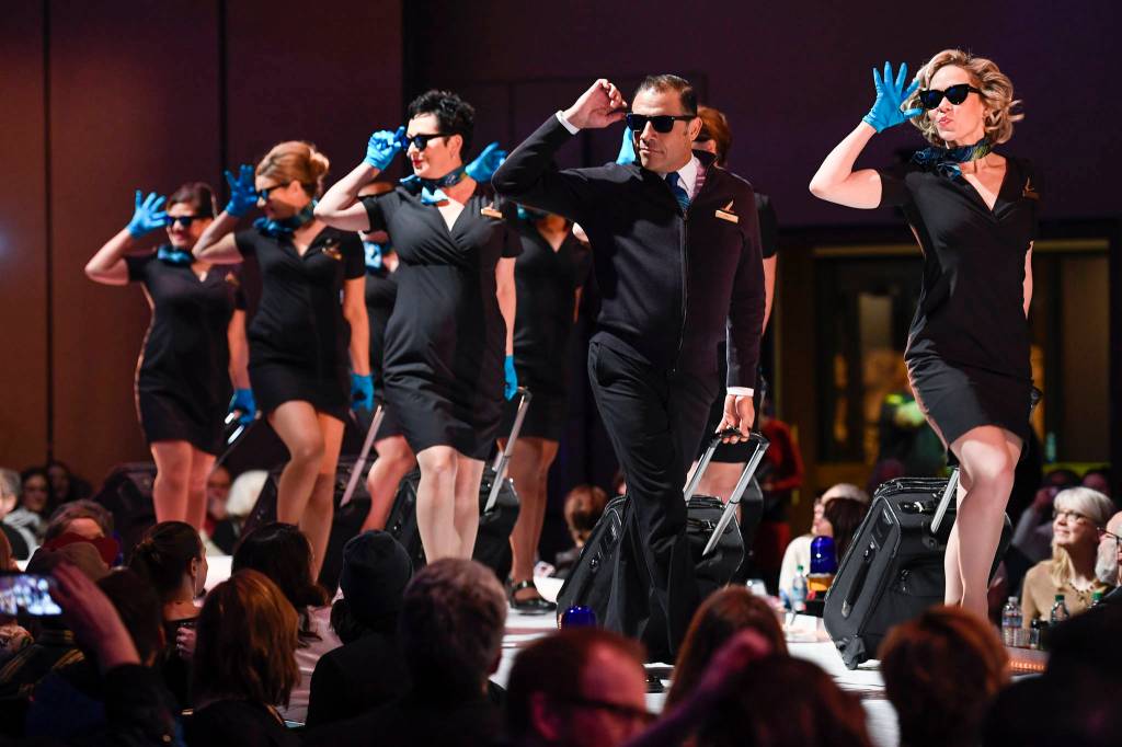 Members of the Alaska Airlines Drill Team arrive on time at the Wearable Art show at Centennial Hall on Saturday, Feb. 16, 2019. (Michael Penn | Capital City Weekly)